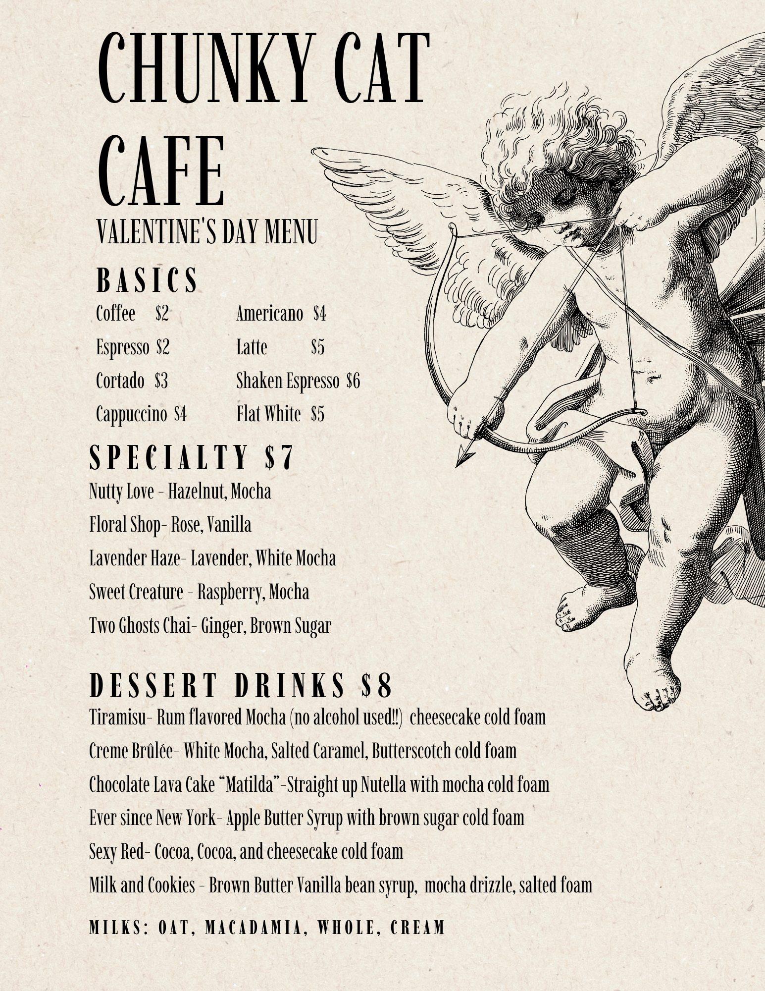 If Atelier is closed for a private event, we may be serving at a drop location! Please follow us on instagram to stay up to date! @chunkycatcafe on Instagram